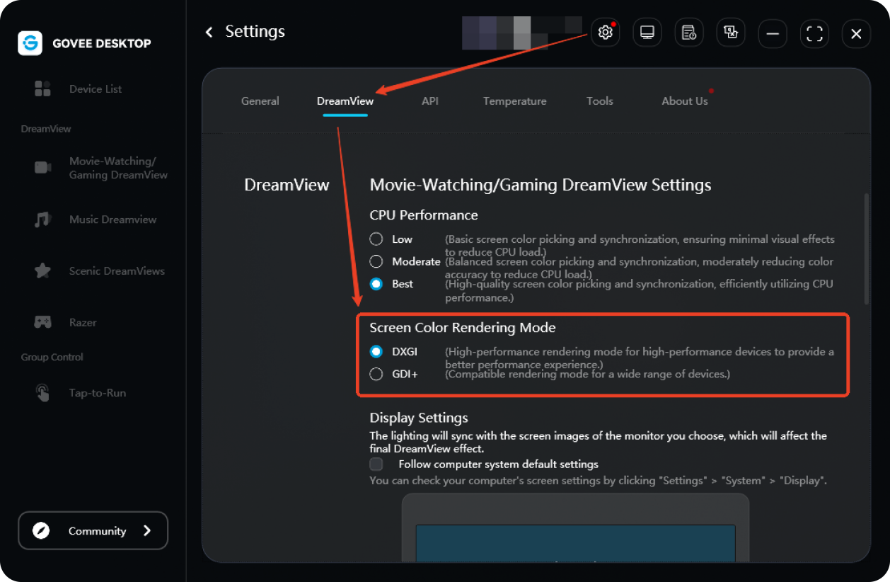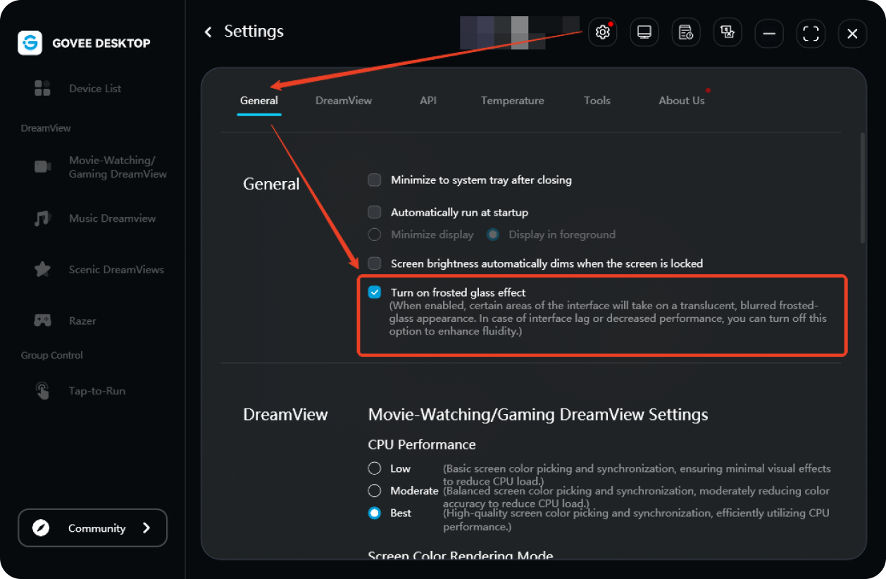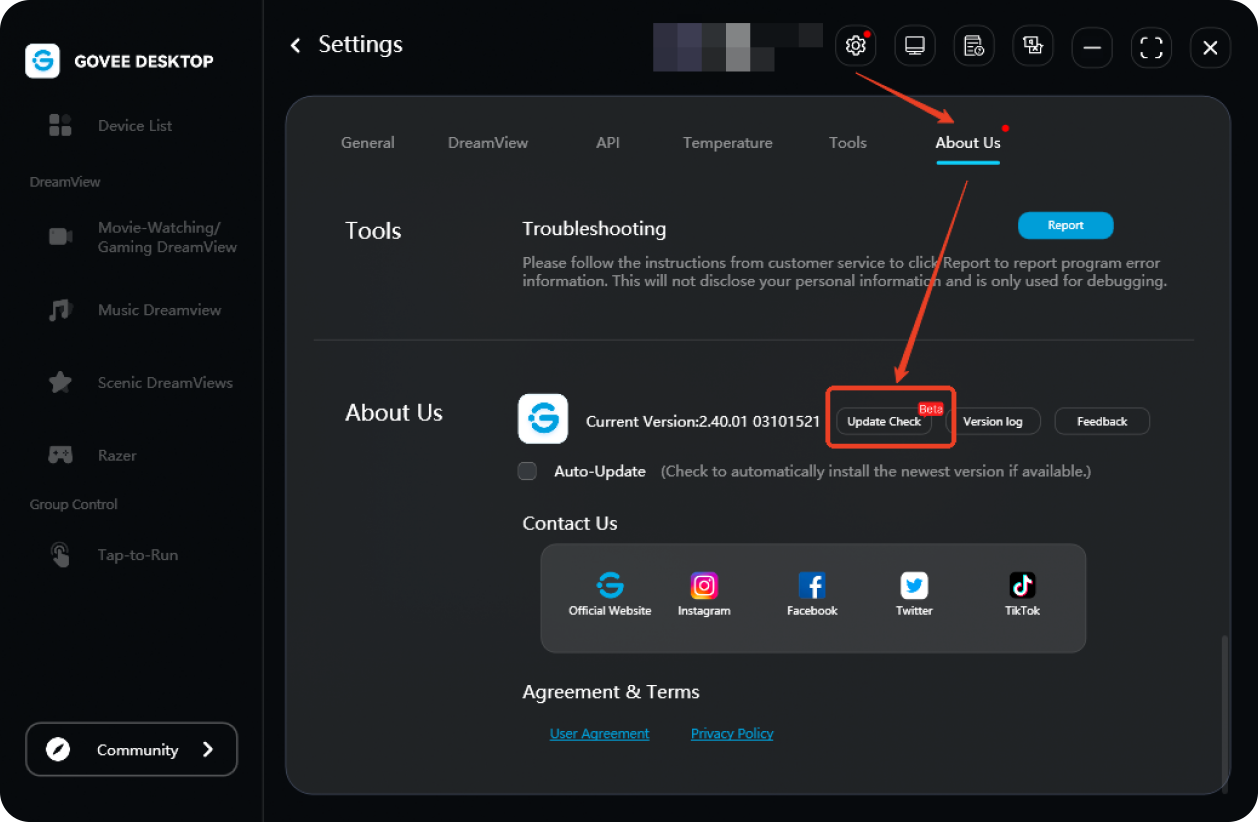 Upgrade Govee Desktop to the latest version (refer to the process shown in the following picture).